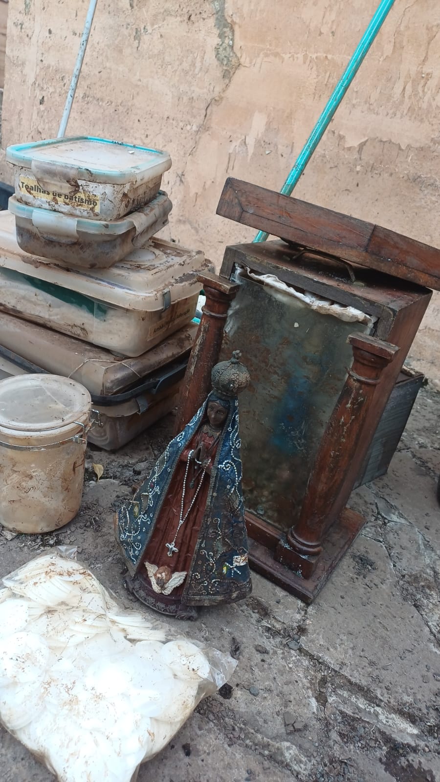Segue algumas imagens de como a igreja foi encontrada após as enchentes: