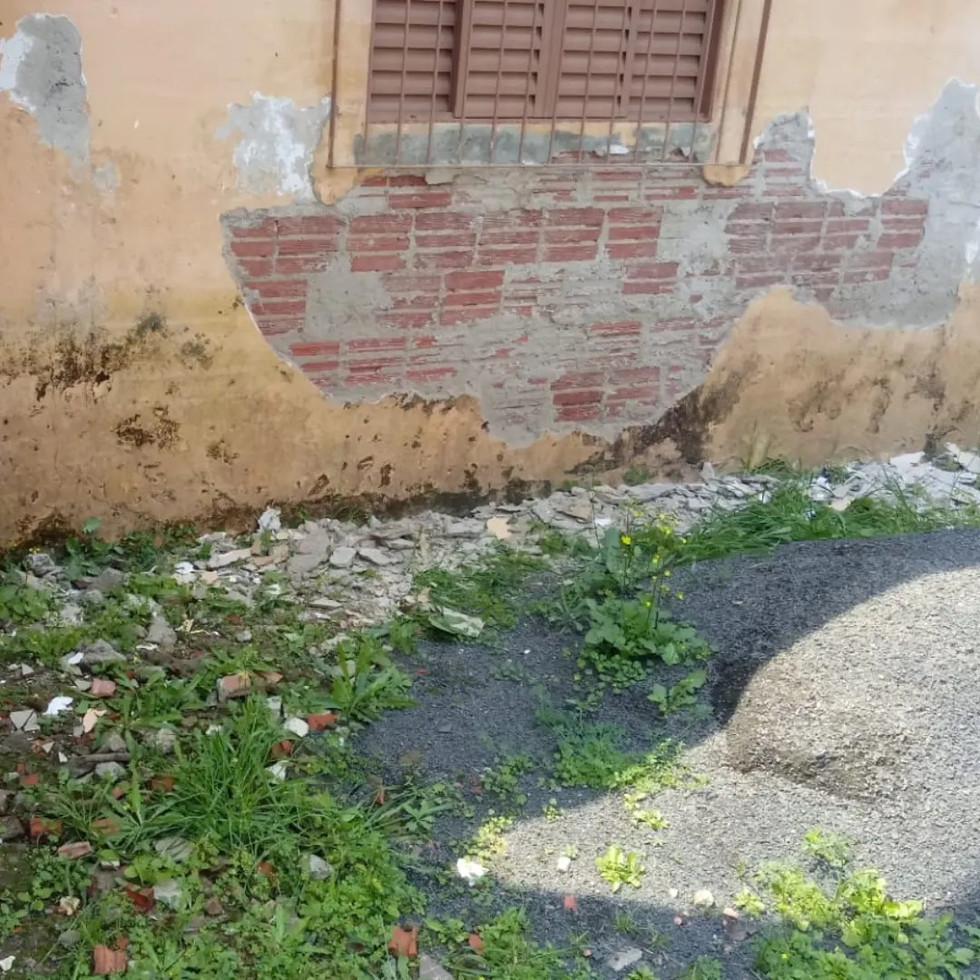 * Parte do reboco externo e interno da igreja teve que ser retirado, pois estavam soltos e com risco de cair e machucar alguém.